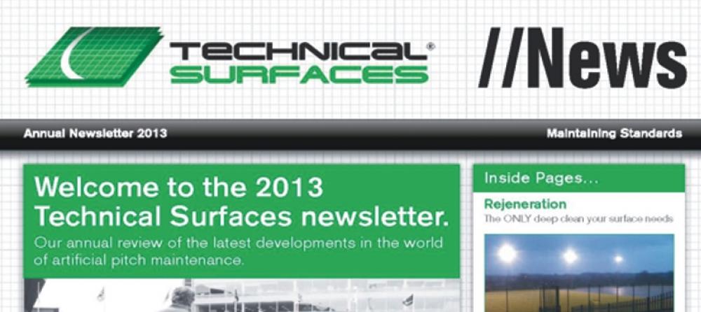 Welcome to the 2013 Technical Surfaces newsletter, our annual review of the latest developments in the world of artificial pitch maintenance.