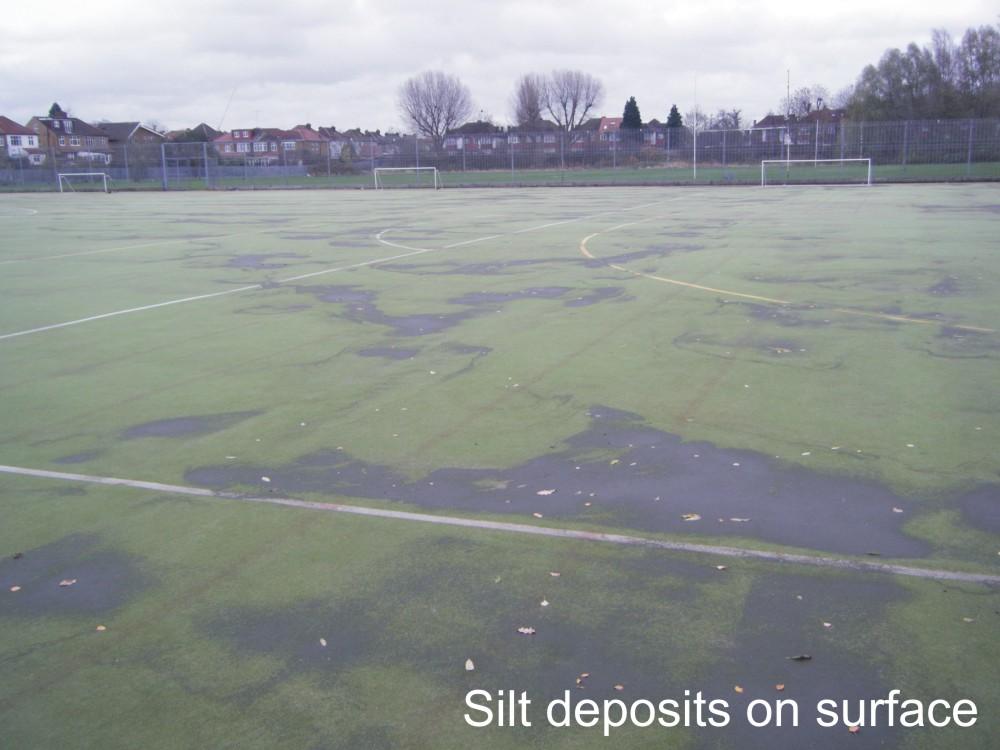 - When the water eventually does drain away, are you then left with unsightly and potentially hazardous mud and silt deposits on your synthetic carpet?