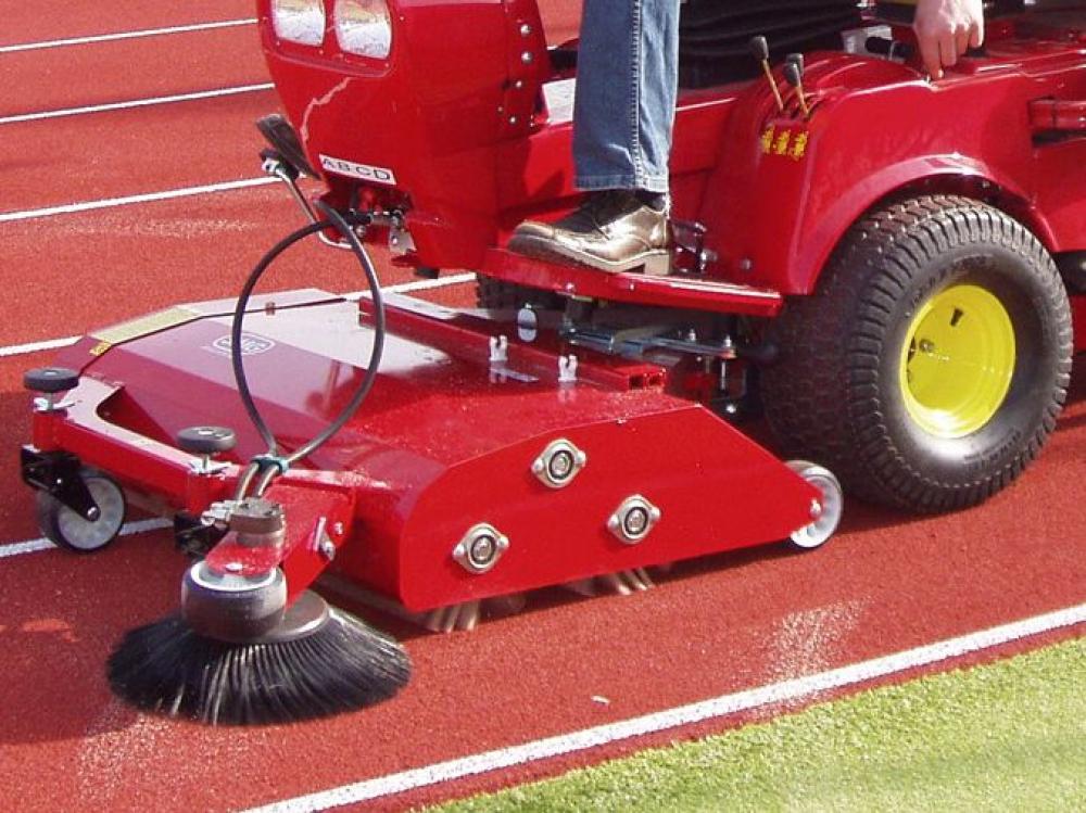 2 opposed brushes for the cleaning and maintenance of non-filled artificial grass, running tracks and other synthetic sports surfaces; equipped with side broom, includes filter sieve for wet conditions; working width approx. 1m