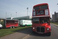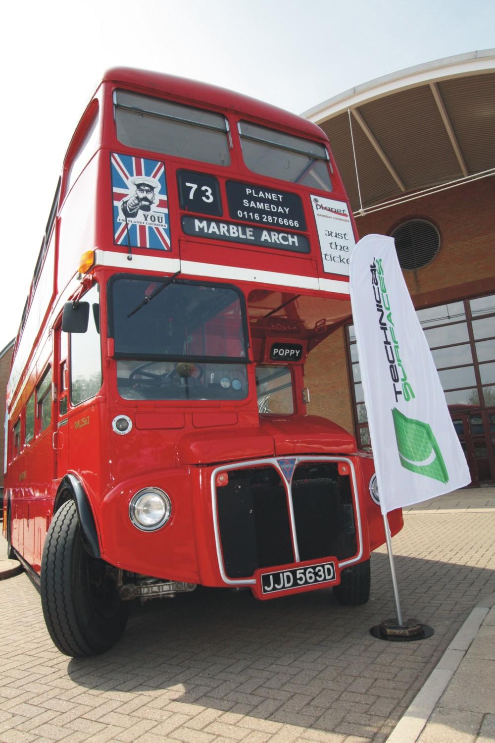 Keeping with the theme of ‘Best of British’ on St. George’s Day, a vintage Double Decker ‘Red Routemaster’ bus was hired to transport the guests to one of the artificial sports pitches, a £36 million capital investment, to show everyone the different types of machinery available to help with the maintenance of the surfaces’ along with the different techniques which included the Revite® and Rejeneration® processes along with drag brushing and power cleaning.