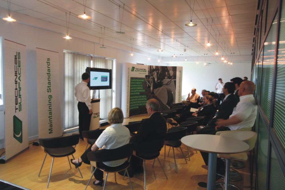 Journalists and consultants were treated to an introduction of why a new corporate look has been chosen along with why synthetic surface maintenance is of the utmost importance which was followed by a lively Q&A session.