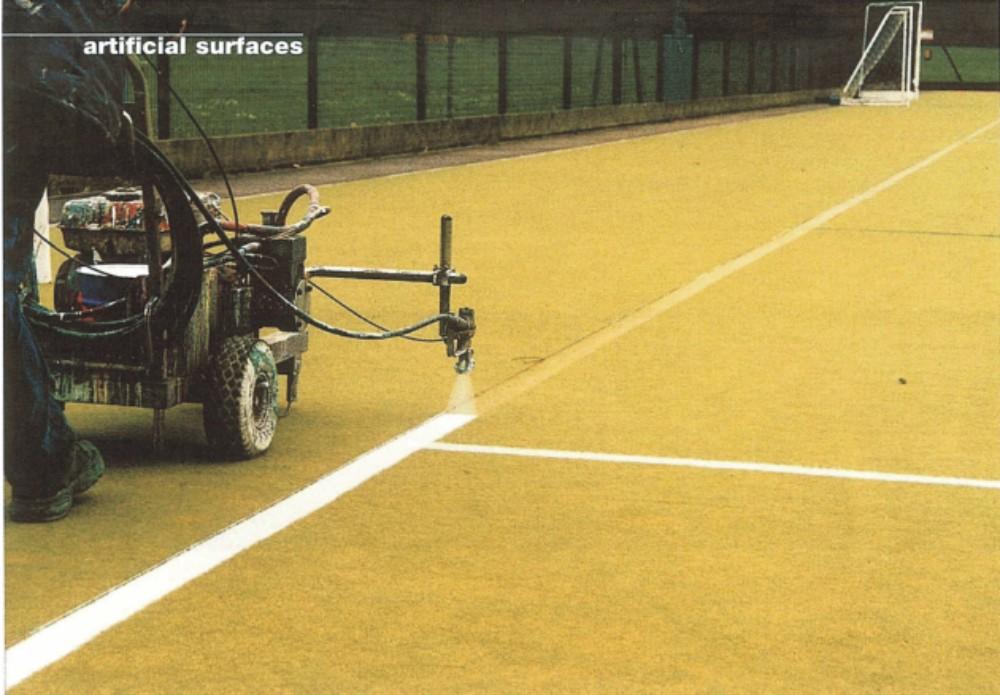 The build up of painted lines on a syntheitc pitch can cause annoyingly uneven ball roll and bounce. But it can also pose a slipping hazard to users if left unchecked, according to maintenance company Technical Surfaces.