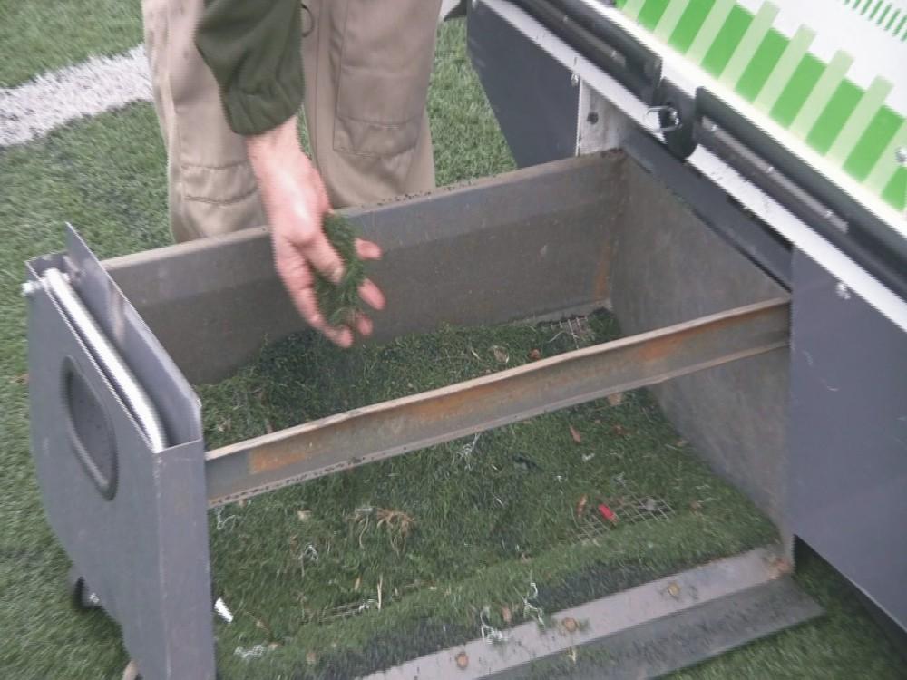Debris can be blown onto the playing surface, washed down with rain or trafficked on by players’ footwear. These contaminants consist of anything from dust and carpet fibre within the infill to glass and leaves. Larger items can more easily be collected; however, to remove the finer debris special Power Sweeping machines will need to be employed.