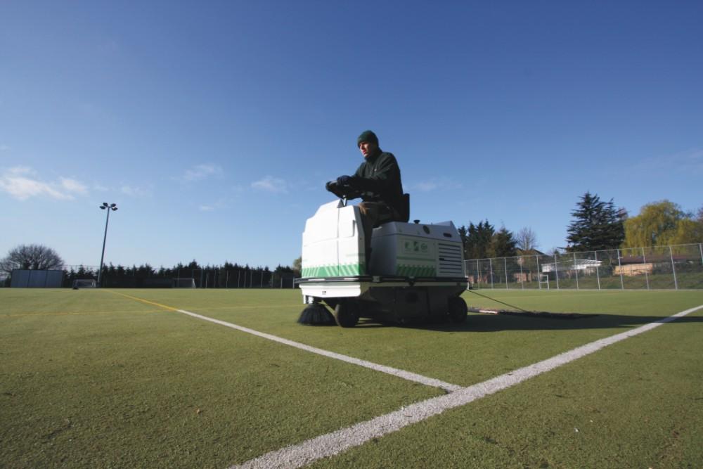 A comprehensive maintenance programme would consist of Drag Brushing the surface at least weekly, complemented by a series of Power Sweeps. Drag Brushing will help to keep the infill evenly distributed over the surface, which will naturally migrate from the middle (high wear areas) of the pitch to the edges. However, it will not remove any dust or fines from the surface, which is the purpose of Power Sweeping. Without the removal of these small contaminants the infill will begin to harden, with the dust almost acting like cement. Ultimately, this will clog the system, affecting the performance and drainage of the surface. This build up of contaminants is gradual but nevertheless is occuring on your surface right now! Failure to remove it in a systematic way will eventually cause your surface to fail.
